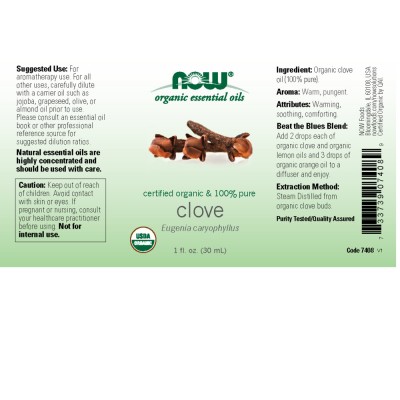 나우 Now, 100% 퓨어, 유기농 클로브, 에센셜 오일, 1 fl oz (30 ml) > 나우 푸드