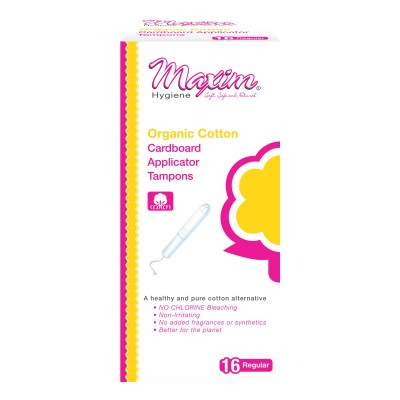 Maxim Hygine, 100% 유기농 코튼 탐폰 레귤러, 16 개 어플리케이터