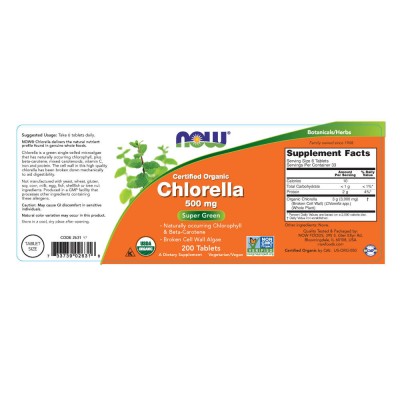 나우 Now, 유기농 인증 클로렐라, 500 mg, 200 타블렛