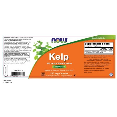 • 나우 Now, Kelp Caps, 325 mcg of Natural Iodine, 250 식물성 캡슐