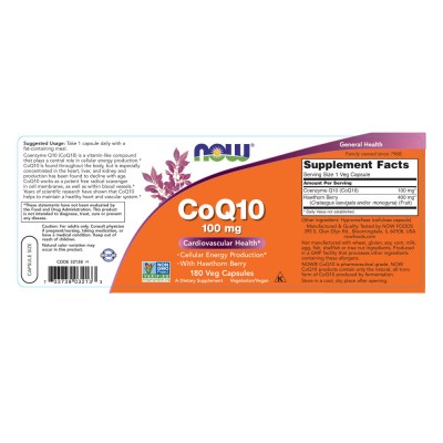 • 나우 Now, CoQ10 100 mg, 180 식물성 캡슐