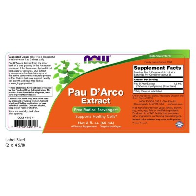 •  나우 Now, Pau D'Arco Extract, 2 fl oz (60 ml)