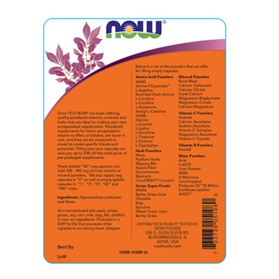 나우 Now, Double 00 Size 식물성 캡슐, 750 Empty 식물성 캡슐 > 나우 푸드