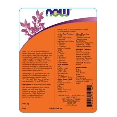 나우 Now, Single 0 Gelatin Caps, 1000 Empty 캡슐 > 나우 푸드