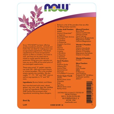 나우 Now, #3 Gelatin Caps Extra Small Size, 1000 Empty 캡슐 > 나우 푸드
