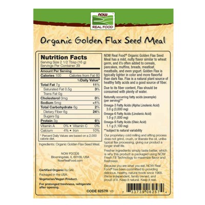 •  나우 Now, Golden Flax Meal, 18 oz. (510 g)